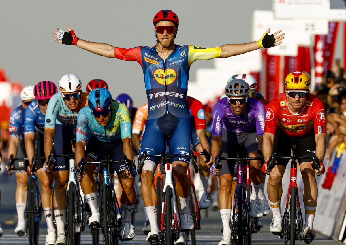 El italiano Jonathan Milan ganó la quinta etapa del UAE Tour 2026. (Foto © UAE Tour)