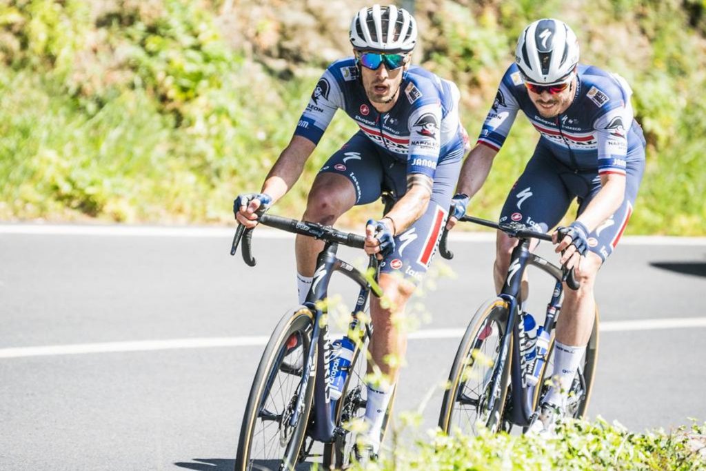 El dúo del Soudal Quick-Step mantuvo el ritmo, pero perdió algo de terreno en los últimos 40 kilómetros. Eso fue el resultado del trabajo frontal de los ciclistas del Team Jayco-AlUla, quienes ayudaron al Jumbo-Visma.