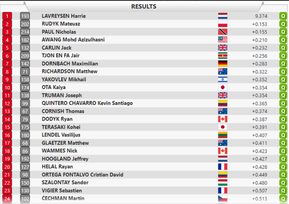 Asimismo, se disputaron las clasificaciones de la velocidad individual masculina, en las que estuvieron en competencia Kevin Quintero y Cristian Ortega.