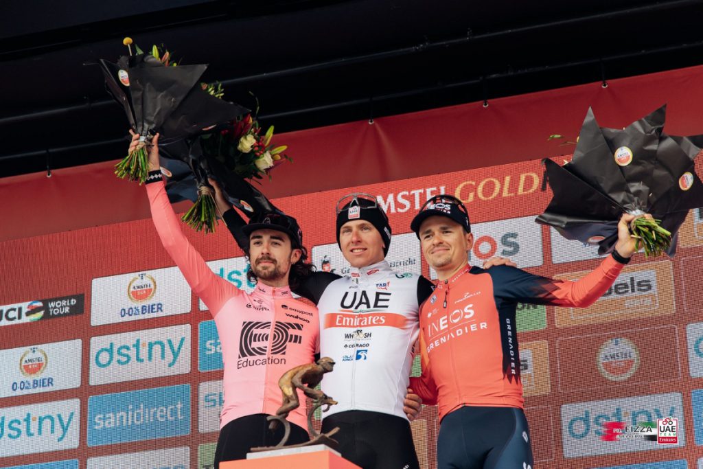 Al jefe de filas del UAE Team Emirates, que sucedió en el palmarés de la clásica cervecera al polaco Michal Kwiatkowski, lo escoltaron el irlandés Ben Healy (EF Eduaction-EasyPost) y el británico (Tom Pidcock), quienes terminaron segundo y tercero respectivamente, completando el podio.