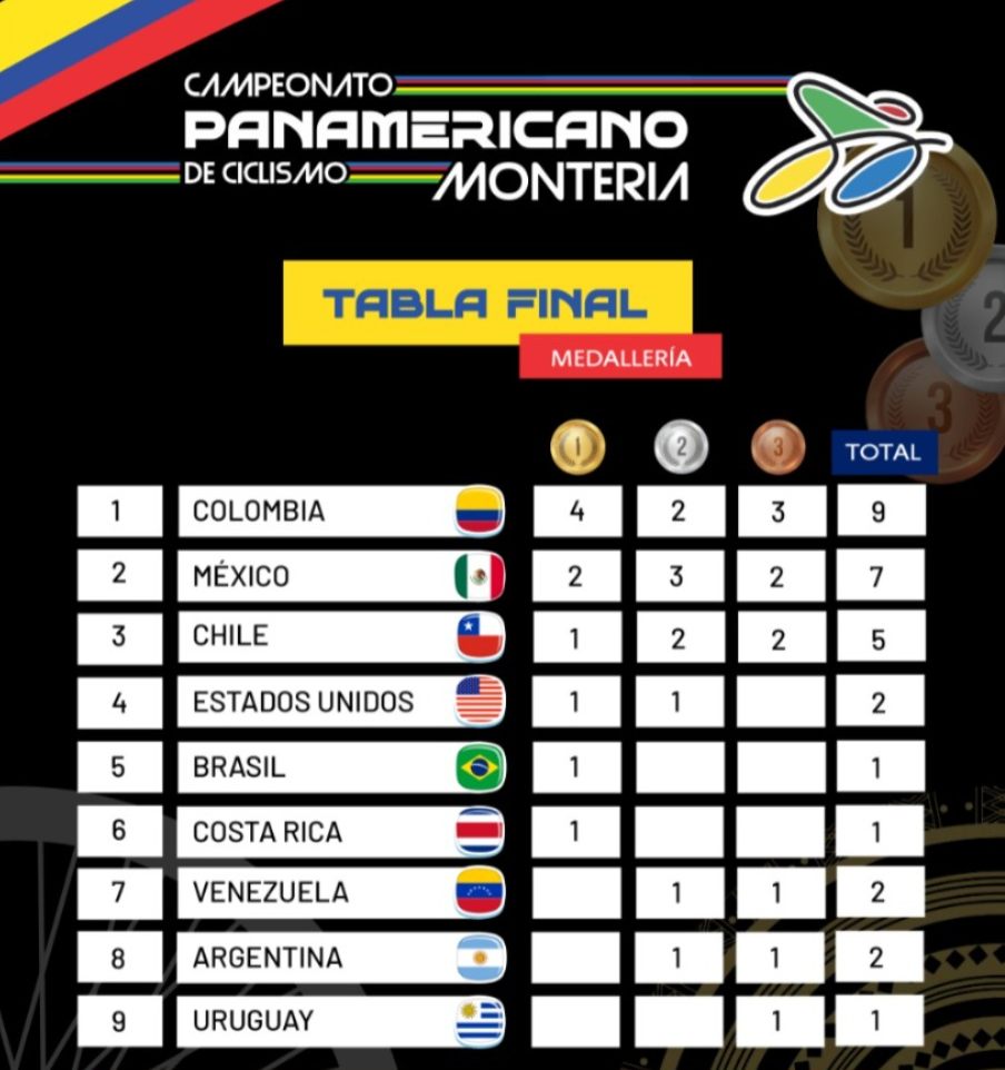 La delegación colombiana, dirigida por el seleccionador nacional David Vargas, consiguió su décimo título consecutivo por naciones en el Campeonato Panamericano de Ruta con cuatro oros, dos platas y tres bronces.