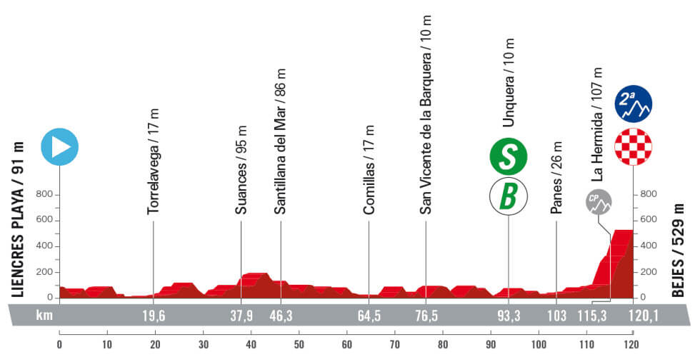 La ronda ibérica tendrá este lunes su segunda jornada de descanso. Las acciones regresarán el martes 12 de septiembre con una etapa de 120,5 kilómetros con salida en Liencres y arribo en el Alto de Bejes, un puerto de segunda categoría con 2,7 Km al 9,2%.