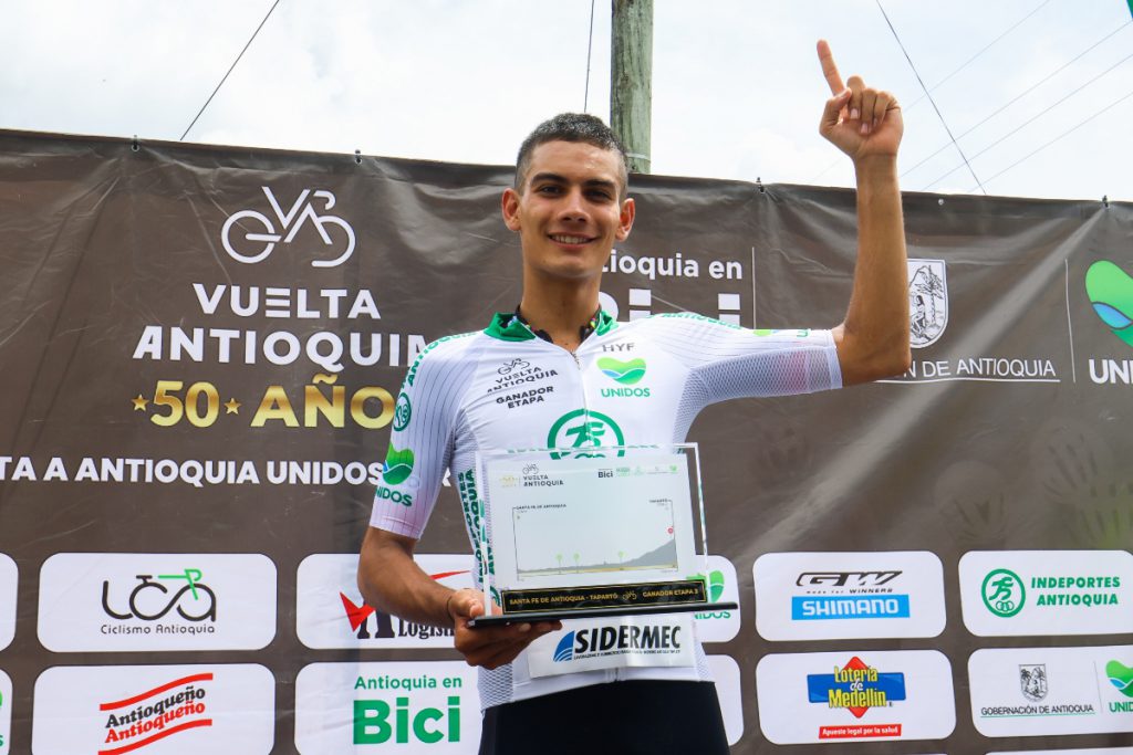 En una final emocionante, William Colorado (GW-Shimano-Sidermec) se impuso en la tercera etapa de la Vuelta a Antioquia 2023, disputada entre Santa Fé de Antioquia y el corregimiento de Tapartó sobre un trayecto de 128 kilómetros en terreno montañoso.