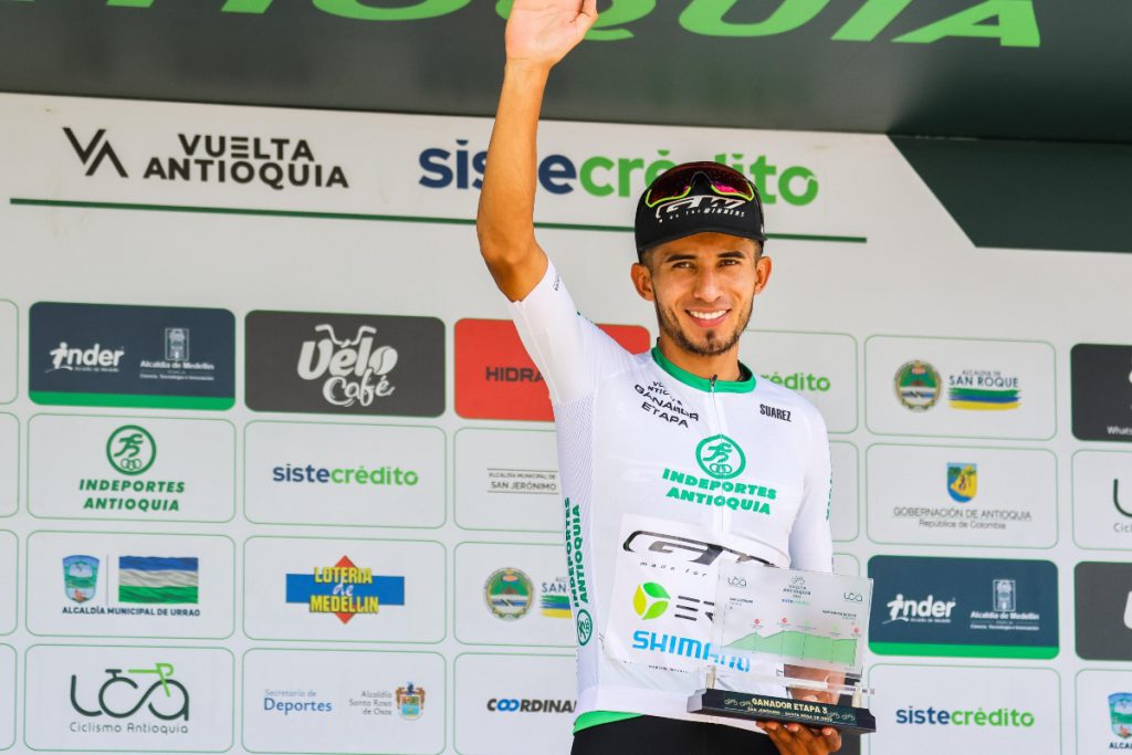El líder Adrián Bustamante (GW Erco Shimano) ganó la tercera etapa de la Vuelta a Antioquia2024 disputada entre San Jerónimo y Santa Rosa de Osos, afianzando su liderato en la carrera antioqueña a falta dos días.