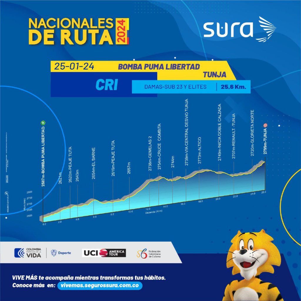 Altimetrías de las cronos individuales que abren en Boyacá los Campeonatos Nacionales de Ruta