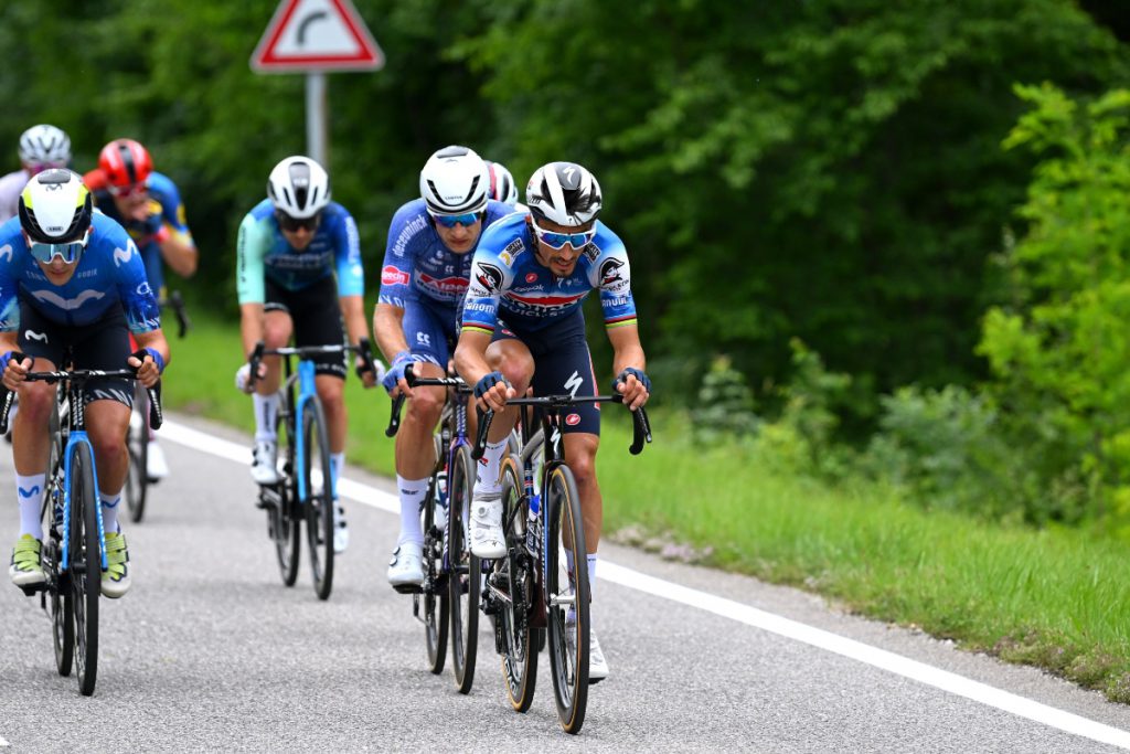 Los primeros atacantes del día fueron Julian Alaphilippe (Soudal Quick-Step), Andrea Vendrame (Decathlon AG2R La Mondiale), Jhonatan Narváez (INEOS Grenadiers), Luke Plapp (Jayco AlUla), Quinten Hermans (Alpecin-Deceuninck) y Pelayo Sánchez (Movistar).