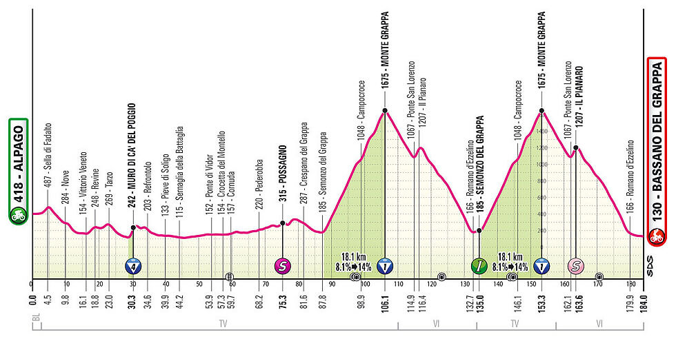 La ronda italiana continuará este sábado 25 de mayo con su etapa 20, una fracción montañosa de 184 kilómetros entre Alpago y Bassano del Grappa, que incluye dos puertos de primera categoría.