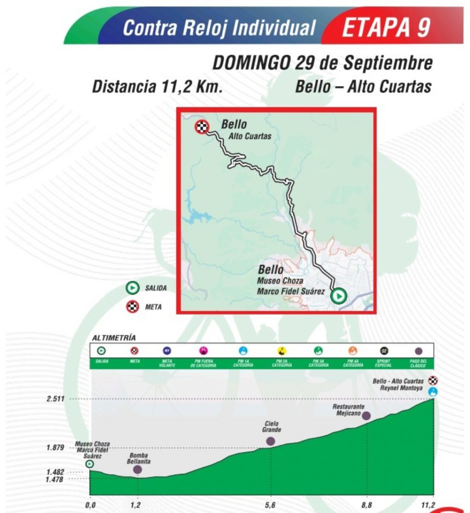 La novena y última etapa del ‘Duelo de Titanes’ se disputará este domingo, una contrarreloj individual de 11,2 kilómetros entre Bello y al Alto Cuartas, donde conoceremos al sucesor del boyacense Aldemar Reyes, campeón de la dos últimas ediciones.