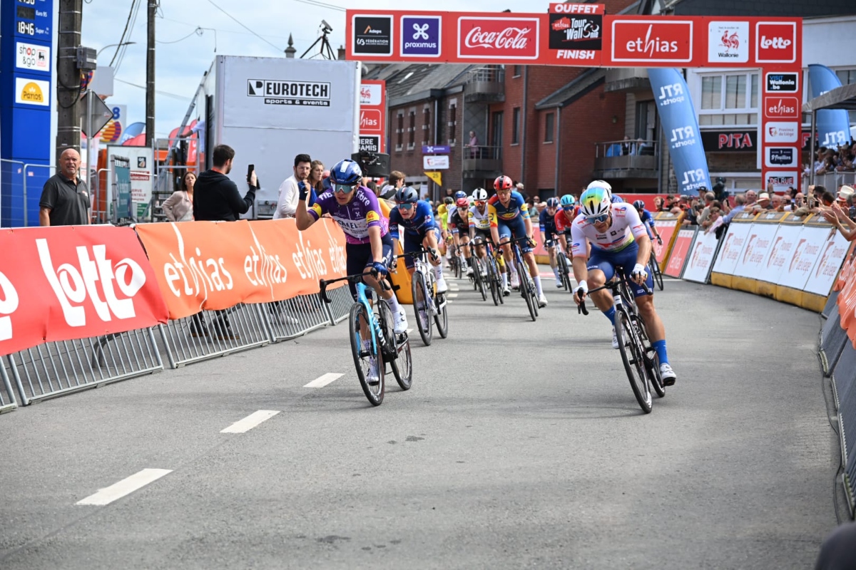 la fuga del día la animaron Baptiste Veistroffer (Decathlon AG2R), Cole Kessler (Lidl-Trek), Johan Jacobs (Movistar Team) y Pascal Eenkhoorn (Lotto Dstny), pero en el cierre todos fueron neutralizados por el pelotón.