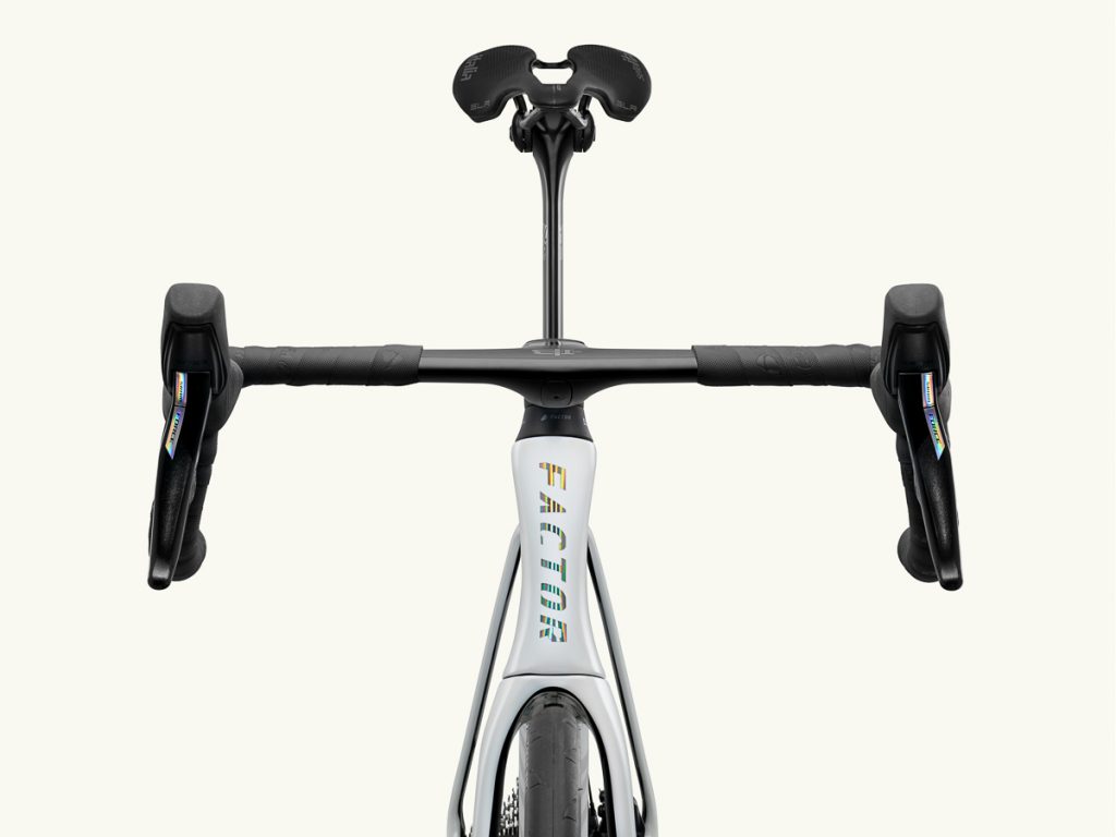 Tenedor delantero y triangulo trasero completamente rediseñados para una mayor eficiencia aerodinámica, con patas más estrechas y un perfil más profundo.
