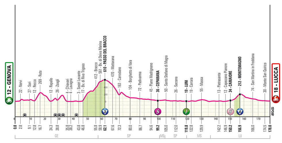 Este miércoles 8 de mayo se disputará la quinta etapa de la ‘Corsa Rosa’, con inicio en Genova y final en Lucca, sobre un recorrido de 178 kilómetros en su mayoría en terreno llano. El sucesor del esloveno Primoz Roglic, campeón del año pasado, se conocerá el domingo 26 de mayo en Roma.