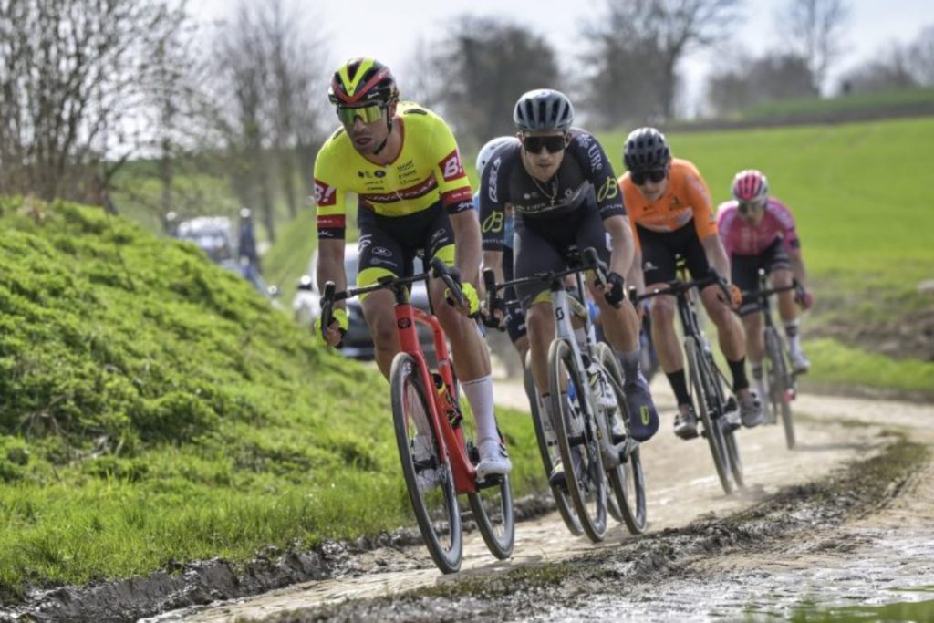 Cuando llegaron a los primeros tramos adoquinados del día, la diefrencia cayó a cinco minutos. Un osado Stefan Küng decidió hacer la travesía por su cuenta. O al menos intentarlo. A sesenta kilómetros del final, el suizo se acercó a casi tres minutos de los tres escapados restantes: Jarnet, Desal y Steimle.