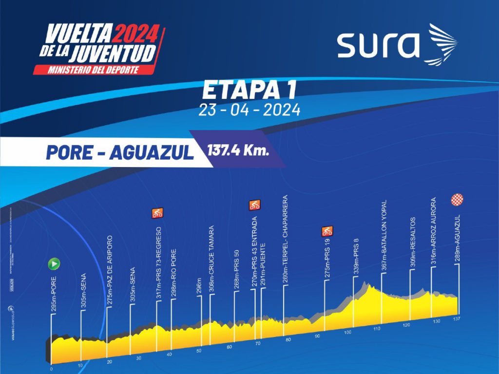 La Vuelta de la Juventud continuará este martes con una etapa ondulada entre los municipios de Pore y Aguazul, que tendrá un recorrido de 137,4 kilómetros.