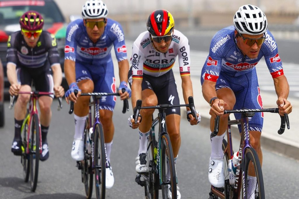 Antes de encarar la subida a Jebel Hafeet, los escapados comenzaron las primeras rampas con un minuto de ventaja sobre el pelotón lo que fue una señal para que el mejor escalador del grupo de cabeza, Buchmann, atacara. El número cuatro del Tour de Francia 2019 toleró la compañía de Dillier durante un tiempo, pero el ciclista suizo no consiguió seguir el ritmo del teutón y se descolgó.
