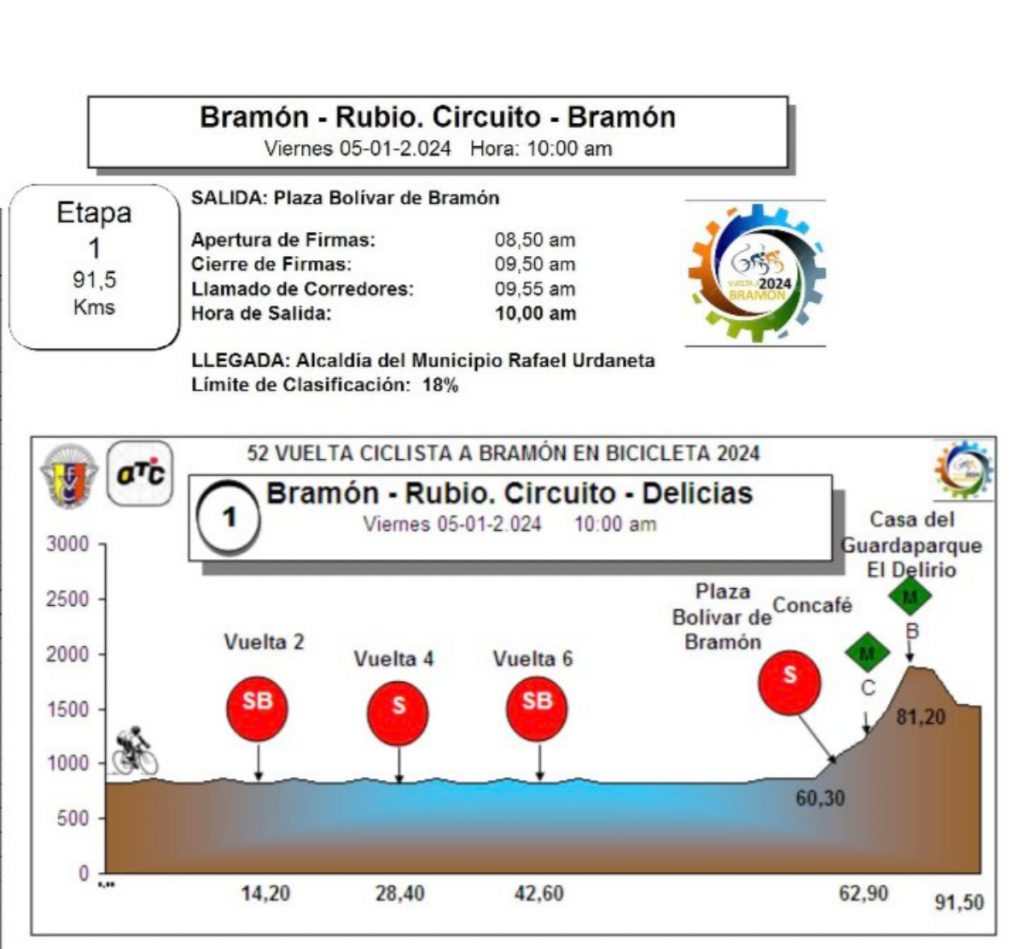 En el suroeste del estado Táchira, Venezuela, más exactamente en Bramón, se dará inició a la edición 52 de la Vuelta a Bramón en Bicicleta, la tercera carrera con más historia en el vecino país.