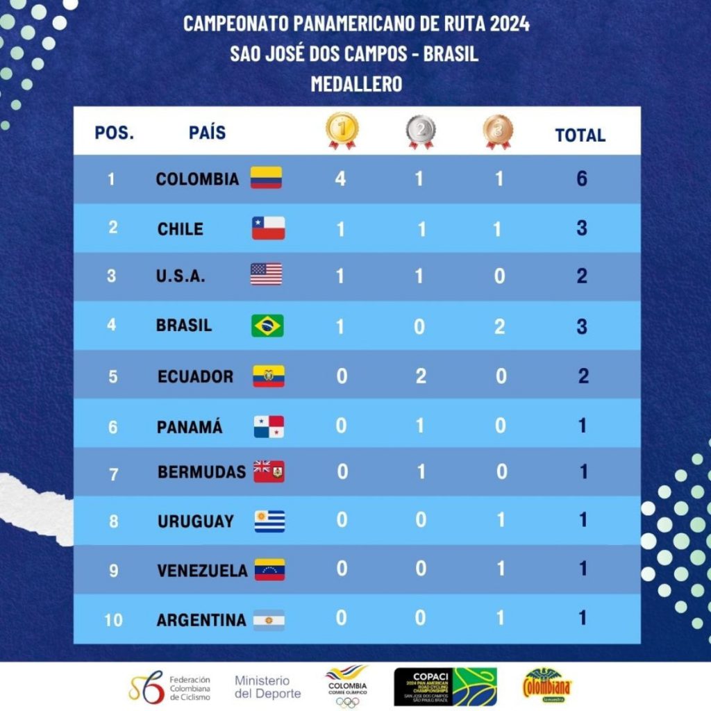 La ciclista colombiana Luciana Osorio se quedó con la medalla de oro en Brasil al ganar la prueba de fondo de 59 kilómetros en el Campeonato Panamericano de Ruta, sumando el cuarto título para Colombia en Sao José dos Campos, Sao Paulo y su segunda presea dorada en el evento organizado por la Copaci.