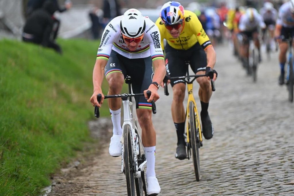 Hacia la subida favorita de Tom Boonen, todos los grandes favoritos asomaron la nariz co los hombres del Lidl-Trek muy activos. Precisamente, Jasper Stuyven y Mads Pedersen lanzron el primer ataque en el Taaienberg, pero pronto fueron superados por (quién más que) Mathieu van lanzaron Poel. Nadie fue capaz de enganchar su rueda, pero se dio cuenta de la inutilidad de su esfuerzo y bajó el ritmo.