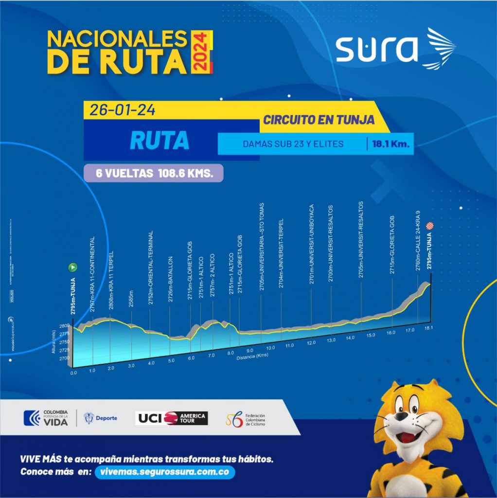 Los campeonatos nacionales continuarán este viernes con la disputa de la prueba en línea, para las damas elite y sub-23, quienes deberán cumplir un circuito urbano por Tunja, de 108,7 kilómetros.