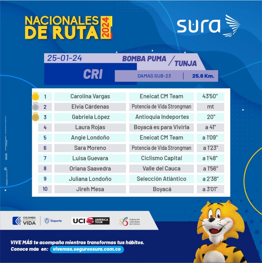 “Había trabajado esta contrarreloj demasiado, mejorando pequeños detalles de la mano de mi entrenador y todo mi equipo. Me siento muy agradecida con todos ellos por todo su apoyo. Estoy muy motivada y feliz”, dijo la corredora paisa.