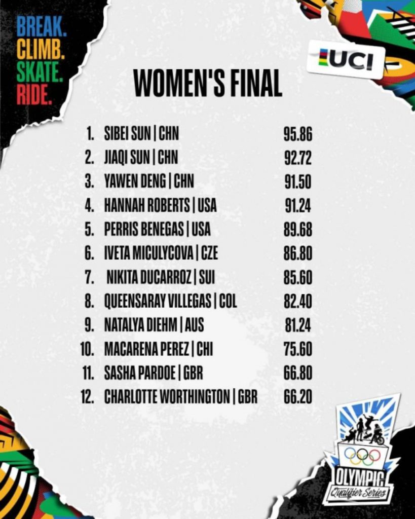 Para obtener una de las plazas a París 2024 a través de las Series de Clasificación Olímpica, todos los riders competirán por un máximo de 50 puntos en cada una de las OQS: Shanghái y Budapest.