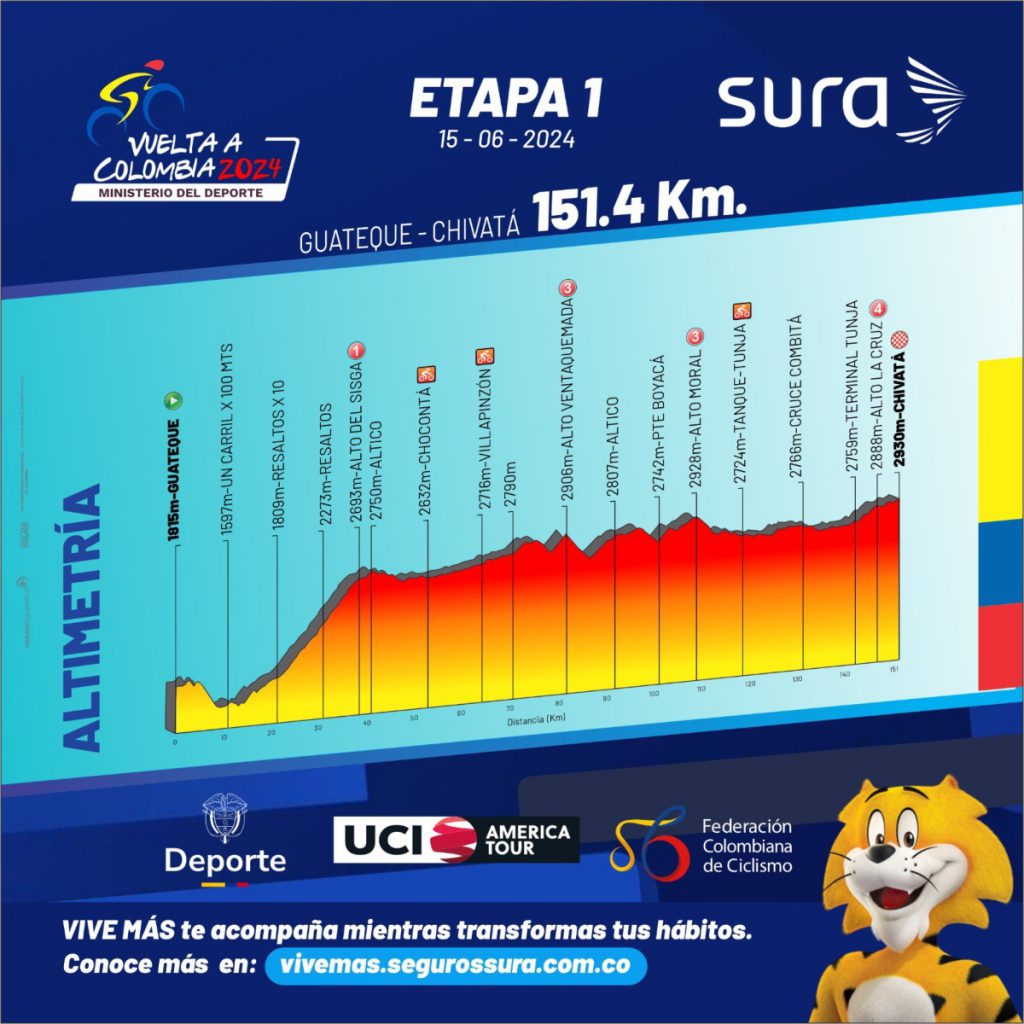 La ronda colombiana continuará este sábado con la disputa de su primera etapa en línea, una fracción ondulada de 151,4 kilómetros con inicio Guateque que pasará por la Terminal de Tunja para llegar a la vía a Chivatá.