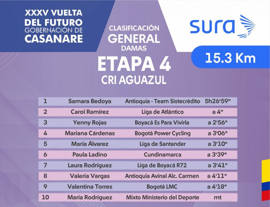 Samara Bedoya campeona de la Vuelta del Futuro en la rama femenina por 4 segundos; Luciana Osorio gana la crono final