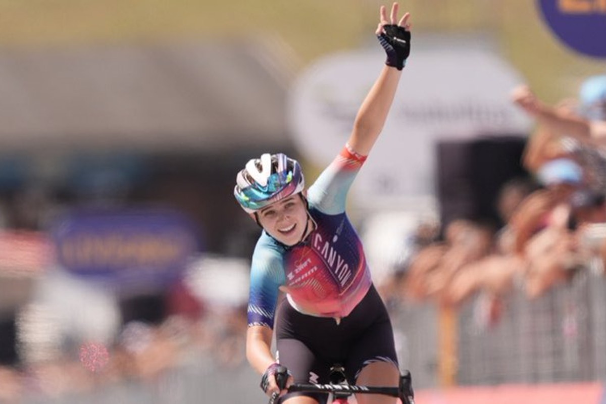 Neve Bradbury del Canyon se quedó con la etapa reina del #GiroWomenEnDSPORTS. Lotte Kopecky y Elisa Longo, fueron segunda y tercera respectivamente.#CiclismoAsiDSPORTS
