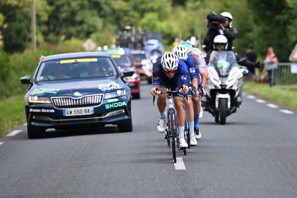 La fuga del día la animaron Valentin Madouas (Groupama – FDJ), Quentin Pacher (Groupama – FDJ), Jonas Abrahamsen (Uno-X Mobility), Anthony Turgis (TotalEnergies), pero a menos de 45 kilómetros para la llegada los cuatro aventureros fueron capturados por el pelotón.