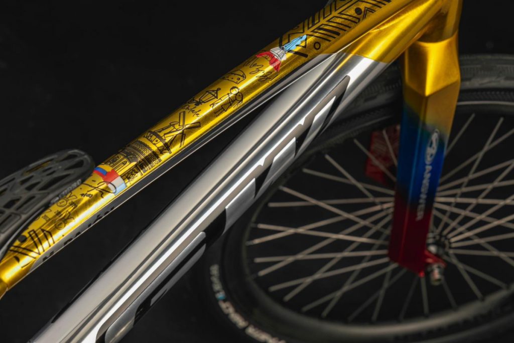 El diseño de la bicicleta de Mariana Pajón está impregnado de simbolismo patrio y personal. Desde el primer vistazo, la bandera colombiana en todo su esplendor recorriendo el inicio y el final de este marco, recordando no sólo su origen sino también su orgullosa representación en el escenario olímpico mundial. ”Este marco es muy especial para mí, ya que cuenta una historia profunda de este país. Lo defino como una nueva historia, un nuevo ciclo y una oportunidad única”. Describe Mariana Pajón
