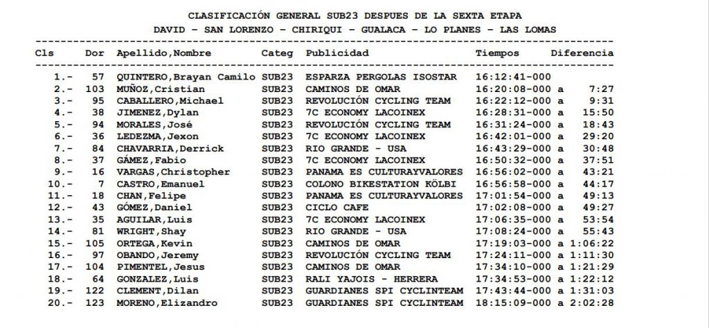 Vuelta a Chiriquí: el colombiano Brayan Quintero mantuvo el liderato Sub-23 a falta de una etapa
