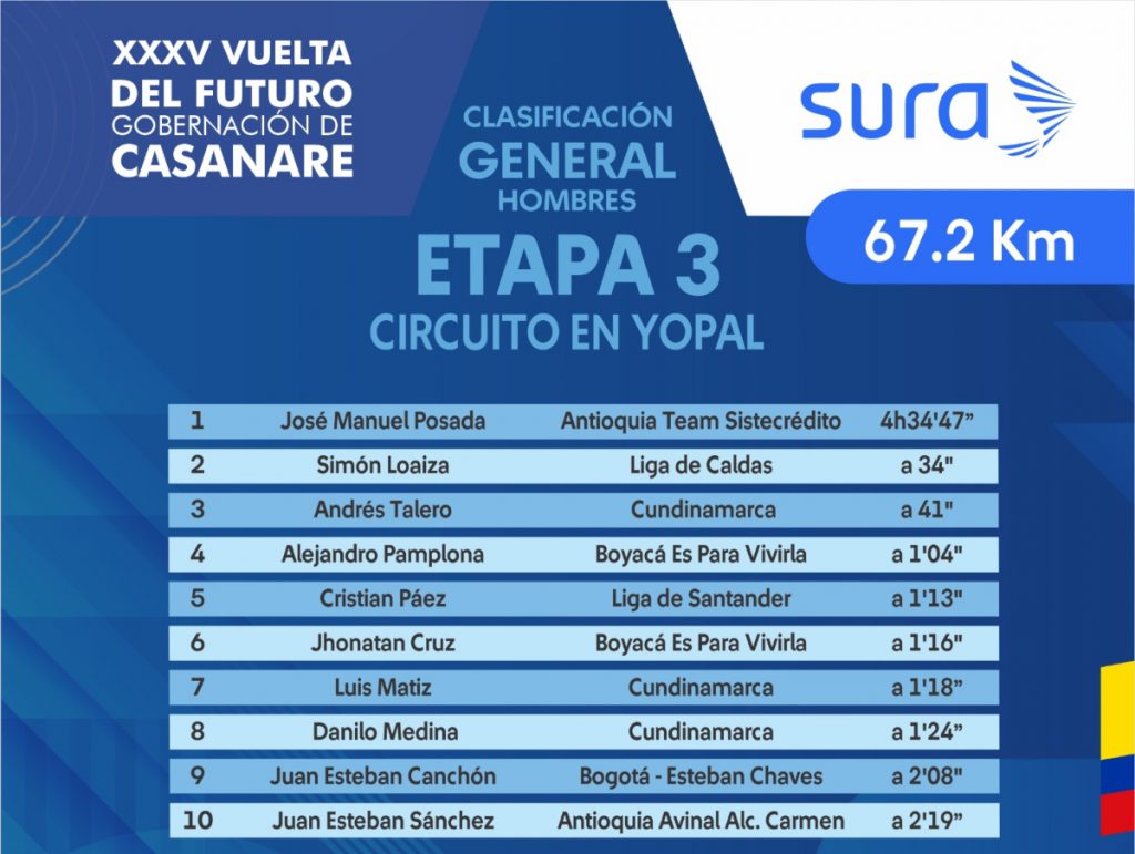 Vuelta del Futuro 2024: Andrés Felipe Pedraza se queda con la tercera fracción y José Manuel Posada cerca del título