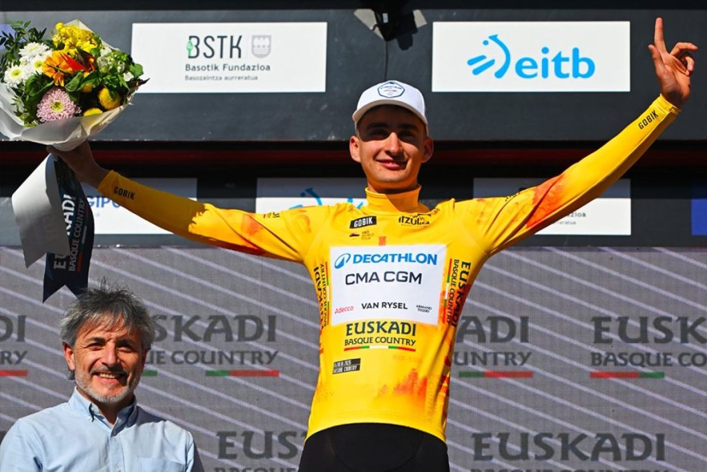 El joven francés Paul Seixas ganó la primera etapa línea de la Vuelta al País Vasco 2026. (Foto Itzulia Basque Country © Cxcling Creative Agency