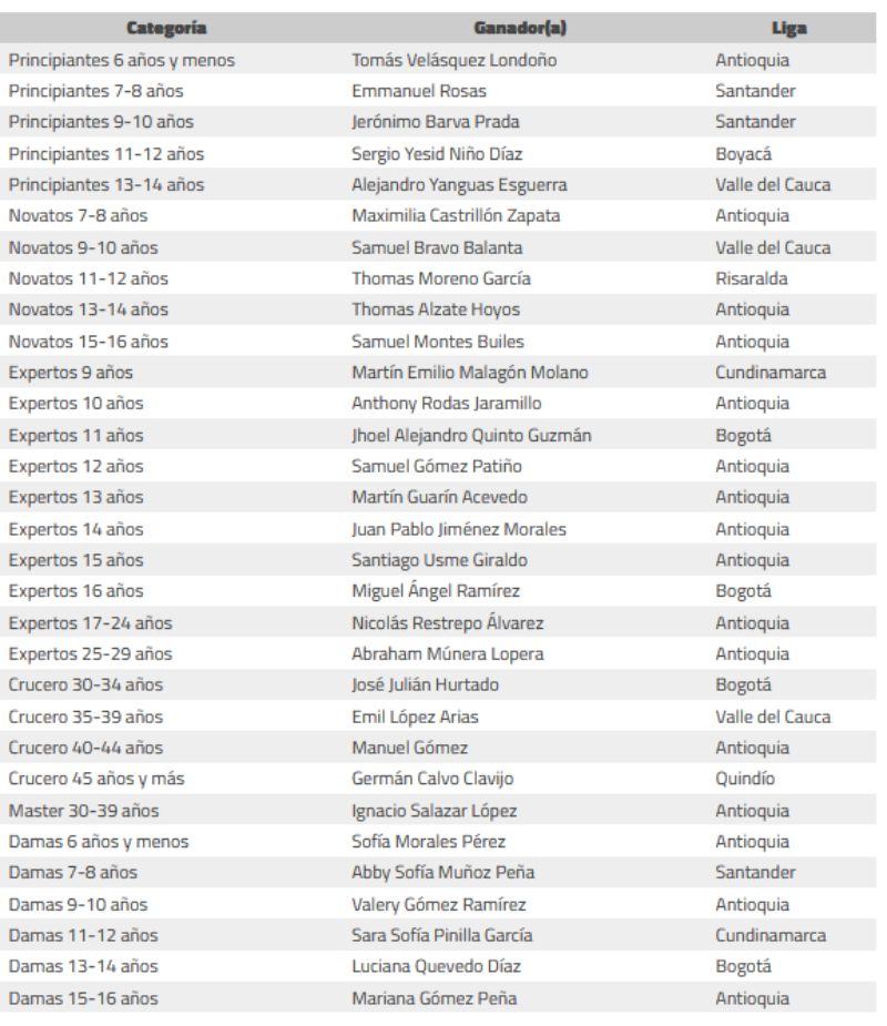Podio Championship Varones 🏆 Mateo Carmona – Antioquia 🥈 Thomas Martínez – Antioquia 🥉 Santiago Suárez – Bogotá