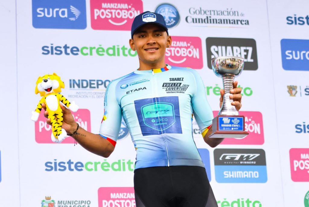 Victoria y liderato para el equipo GW Erco Shimano con Cristian Vélez, quien se impuso en la primera etapa de la Vuelta de la Juventud, una jornada para velocistas disputada entre Sopó y Tibasosa con 171,3 kilómetros de recorrido.