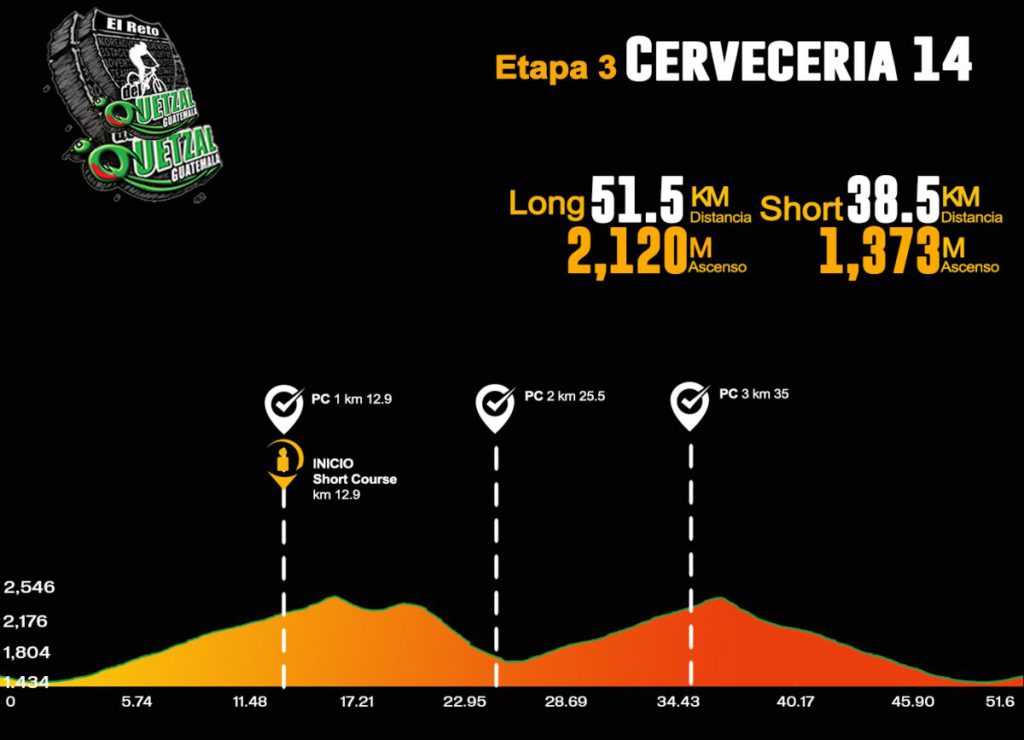 Para este viernes se viene la tercera fracción, una etapa de 51,5 kilómetros con un desnivel de 2,120 metros. La carrera guatemalteca de ciclomontañismo termina el sábado en Carmona.