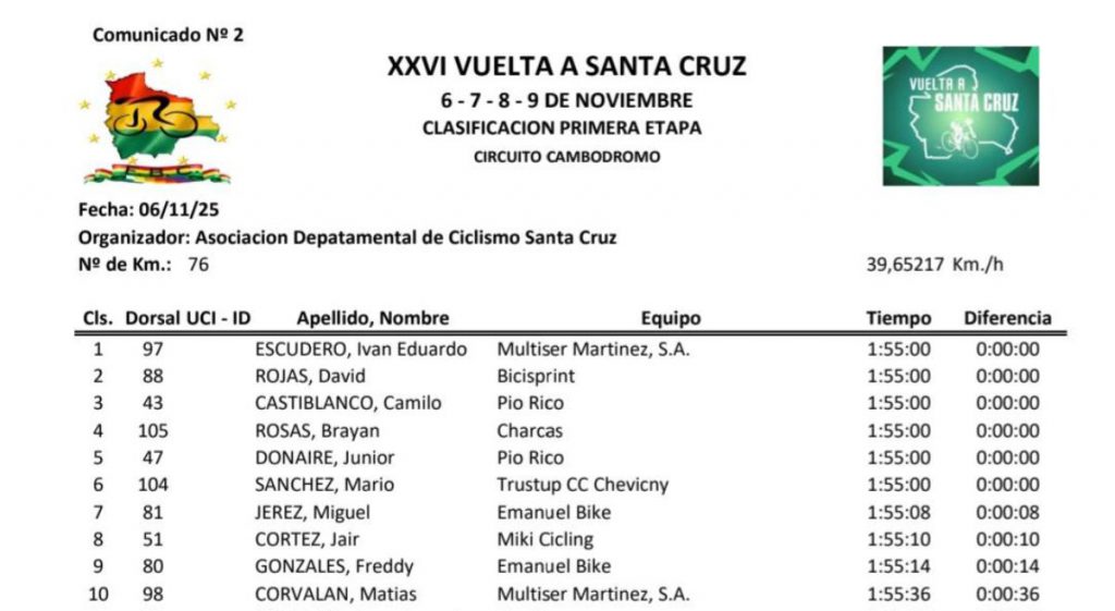 Iván Escudero ganó la jornada inicial de la Vuelta Santa Cruz con Camilo Castiblanco 3°