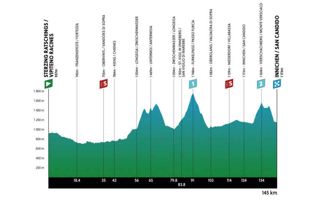 La carrera italiana continuará este miércoles con la tercera etapa, otra jornada ondulada de 145,5 kilómetros entre las localidades de Sterzing e Innichen, que incluye dos puertos de montaña categorizados.