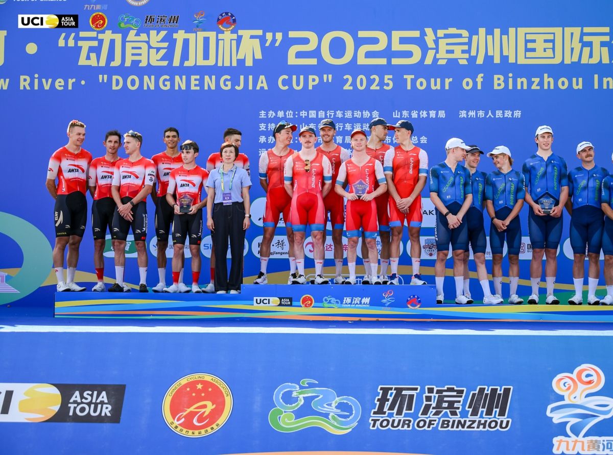 El equipo chino Li Ning Star, en lo más alto del podio del Tour de Binzhou 2025. (Foto © Facebook/ Tyler Lange)
