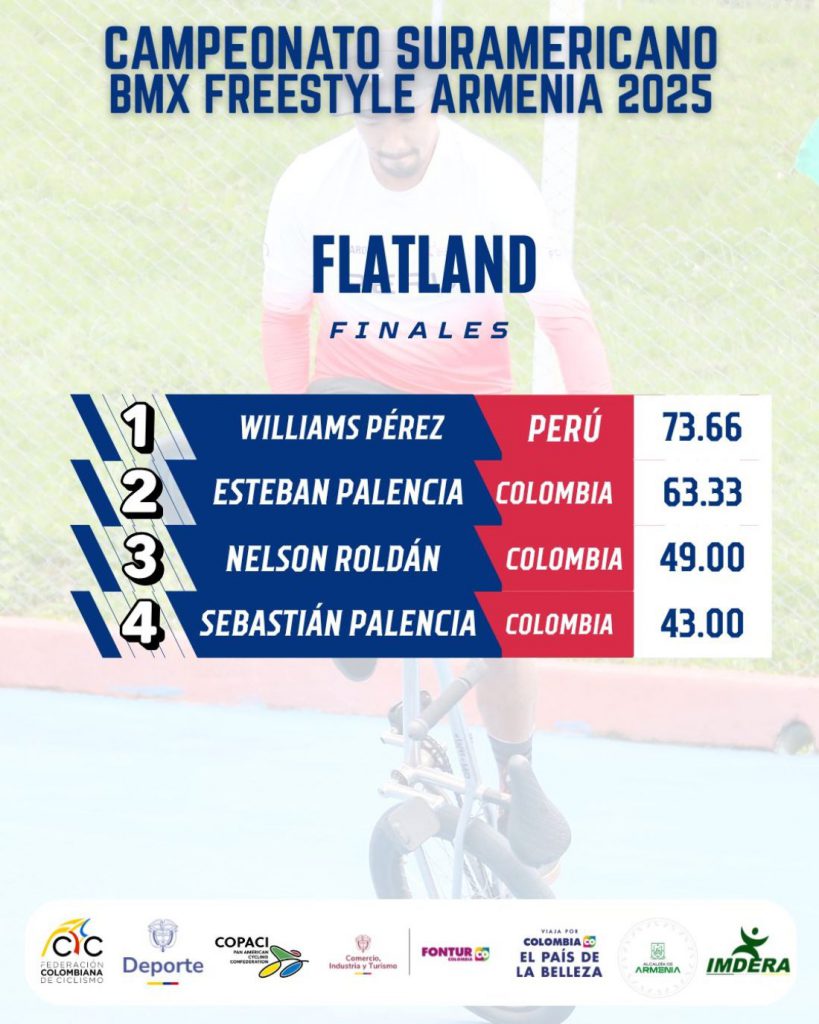 Suramericano de BMX Freestyle Armenia 2025: Williams Pérez se lleva el oro en el Flatland con Esteban Palencia 2° y Nelson Roldán 3°