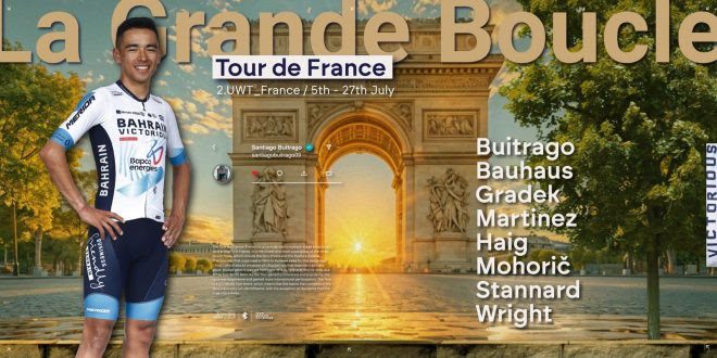 Tras el top 10 del año pasado en el Tour de Francia, Santiago Buitrago liderará al Team Bahrain Victorious, que estará integrado por un experimentado grupo de siete ciclistas más. El bogotano de 25 años volverá a medirse con los mejores ciclistas del mundo tras su buena presentación en la ronda francesa del año pasado.