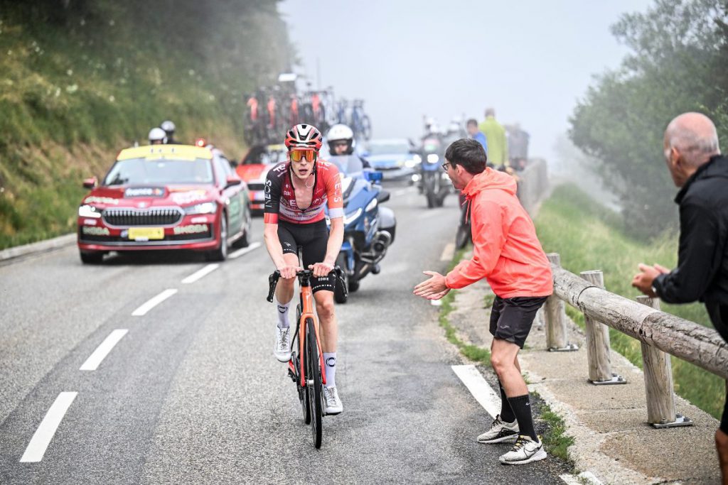 Luego de pasar el penúltimo puerto de montaña de la jornada, Thymen Arensman (INEOS Grenadiers) quedó solo en cabeza de carrera tras un cambio de ritmo en el descenso y se fue en solitario, sorprendiendo a todos sus compañeros de aventura. El neerlandés resistió con temple y aguantó la embestida de los Gallos de la General para terminar celebrando en el puerto montañoso de fuera de categoría.