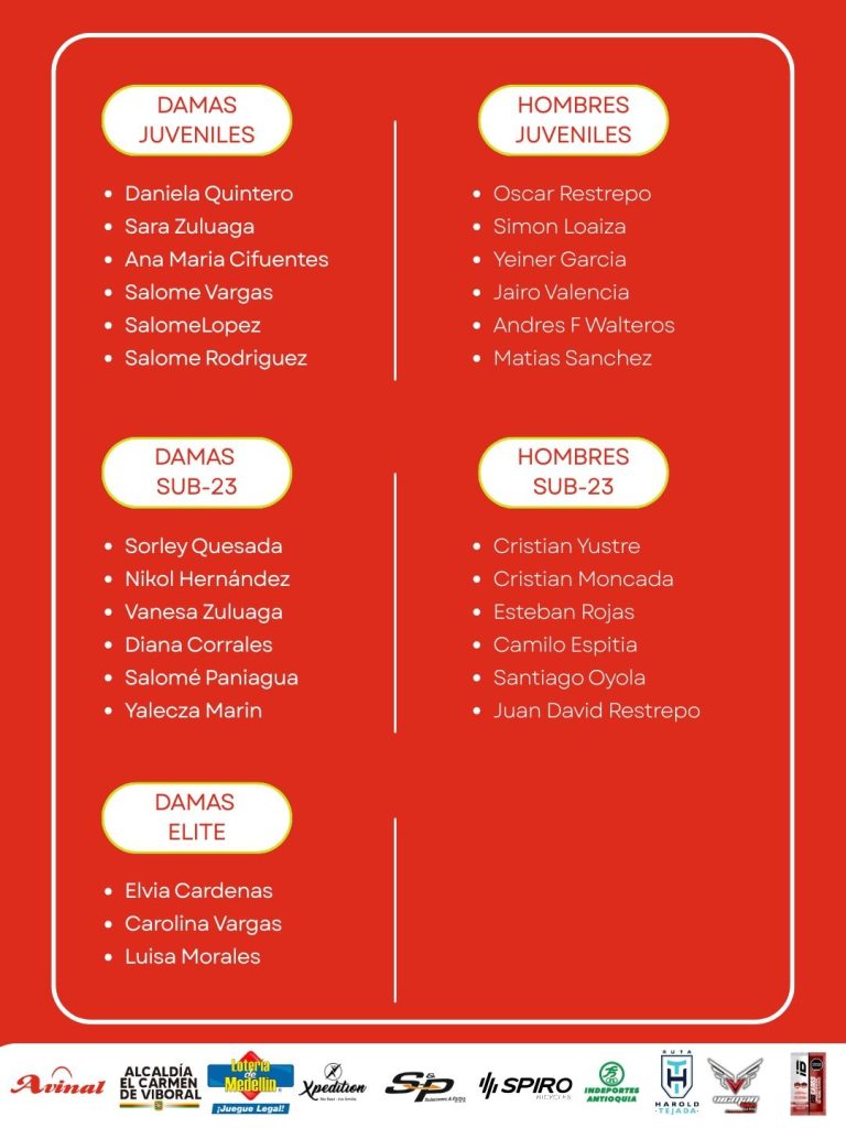 El equipo antioqueño Avinal – Alcaldía El Carmen de Viboral definió la nómina que competirá en el Campeonato Nacional de Ruta, que se realizará la próxima semana en territorio cundinamarqués con Zipaquirá de epicentro.