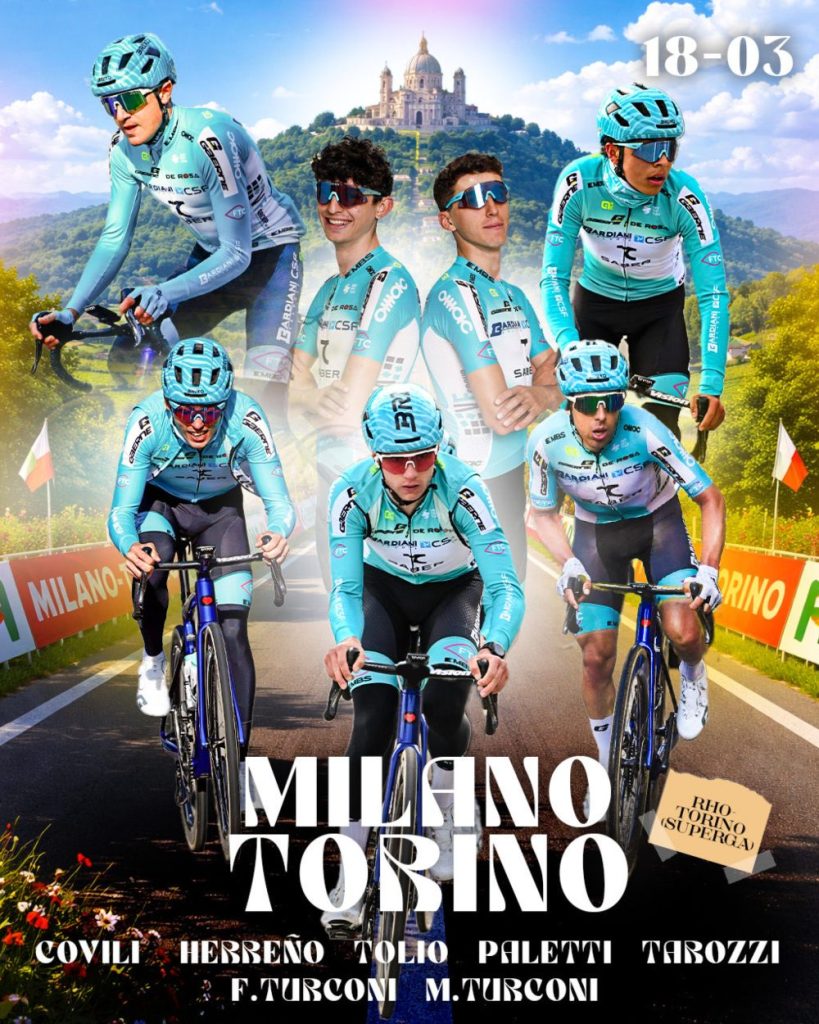 Para la tradicional antesala de la Clásica Milán-San Remo al pedalista nacional lo acompañarán los hermanos Matteo y Filippo Turconi, Luca Covili, Manuele Tarozzi, Alex Tolio y Luca Paletti, mientras que Roberto Reverberi liderará al equipo italiano desde el coche de apoyo.