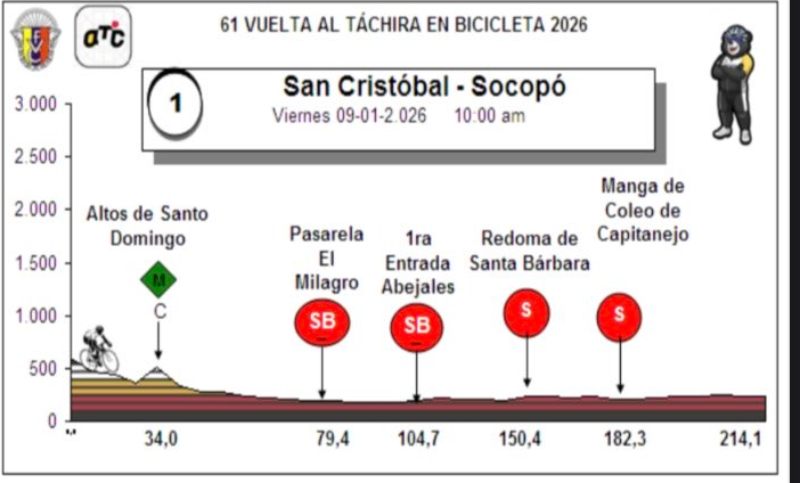 La jornada inaugural de la edición 61 de la Vuelta al Táchira, que contó con un recorrido de 214, kilómetros, transcurrió bajo un sol radiante entre las ciudades de San Cristóbal y Socopó, en el occidente venezolano.