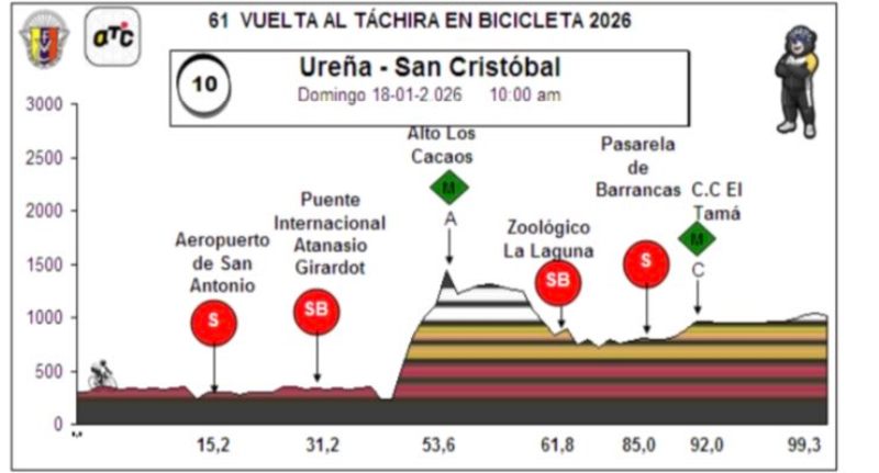 A continuación, la Revista Mundo Ciclístico les presenta el recorrido oficial de la ronda tachirense y los perfiles de las diez fracciones que componen una nueva versión de la tradicional carrera venezolana que hace parte del calendario UCI dentro de la categoría 2.2.