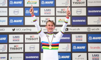 Bajo la fuerte lluvia de Harrogate, el danés Mikkel Bjerg alcanzó este martes su tercer título mundial consecutivo en la contrarreloj individual de la categoría Sub...